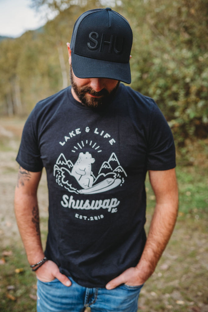 HEATHERED BLACK with SNOWY WHITE print on our signature L+L unisex tee!